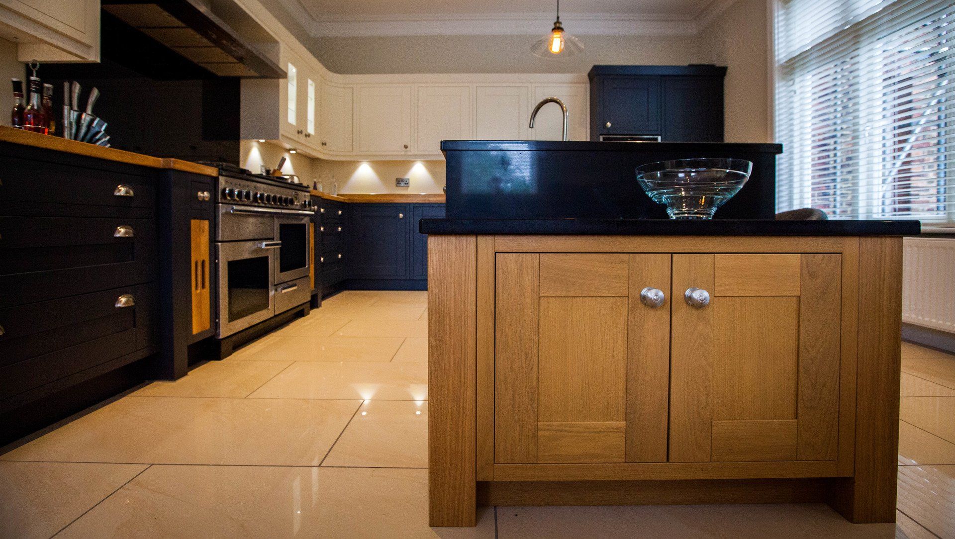 Beautiful photographs of a recently renovated kitchen. Old meets new with Milton, taking inspiration from traditional in-frame craftsmanship but being very much designed for modern living. Solid Oak worktops nicely contrast with the Charcoal and Parchment White doors, and the Black Quartz finishes it off nicely as a stunning centrepiece.