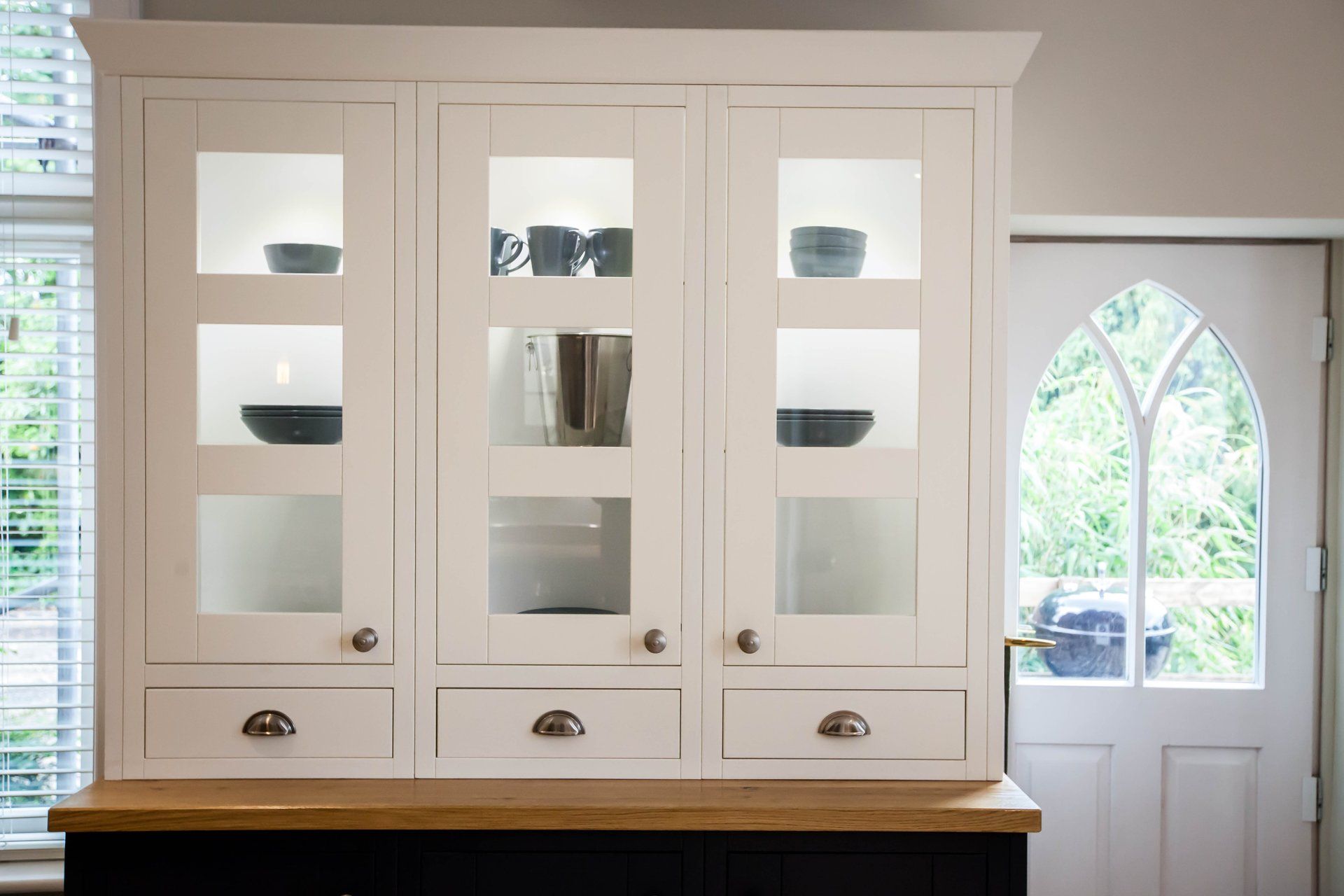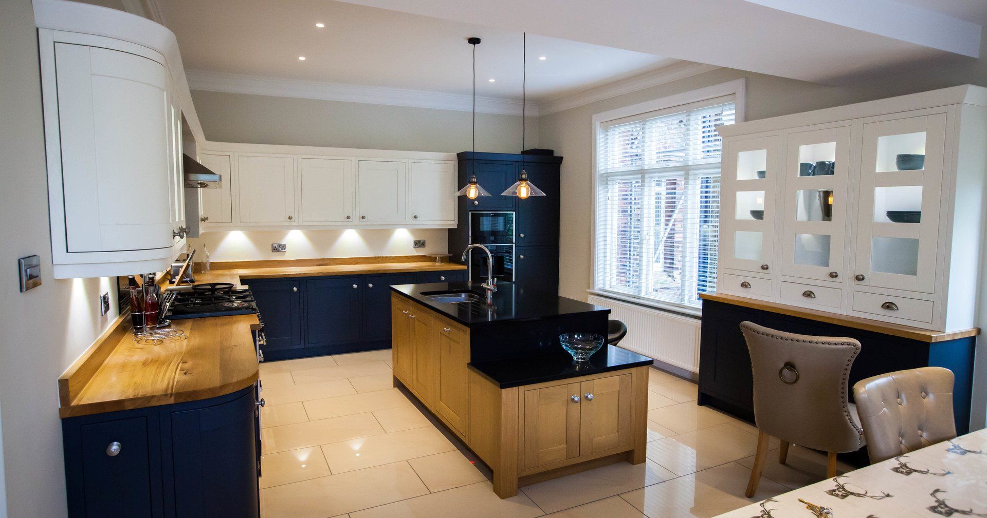 Beautiful photographs of a recently renovated kitchen. Old meets new with Milton, taking inspiration from traditional in-frame craftsmanship but being very much designed for modern living. Solid Oak worktops nicely contrast with the Charcoal and Parchment White doors, and the Black Quartz finishes it off nicely as a stunning centrepiece.